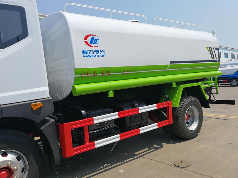 二、上裝配置: 國內(nèi)三家灑水車生產(chǎn)流水線,其中一條在我公司。罐體由國標5mm厚優(yōu)質(zhì)碳鋼板一次性卷壓成型,二保焊行走小車自動焊接,焊縫均勻、美觀,避免了人工焊接的漏焊和虛焊,罐體內(nèi)部加固處理,并設置防浪板,罐體內(nèi)外做防銹處理,標配前沖、后灑、側(cè)噴、后置式工作平臺,平臺帶踏梯,四周有安全護欄,平臺上設有高壓水炮,可360°旋轉(zhuǎn),可調(diào)成:直沖狀、大雨、中雨、小雨、毛毛雨。3950軸距及以上車型標配高位花灑功能。